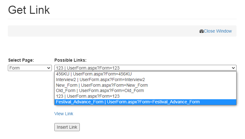 - Click on Get Local link, select Form from the select Page drop down menu,