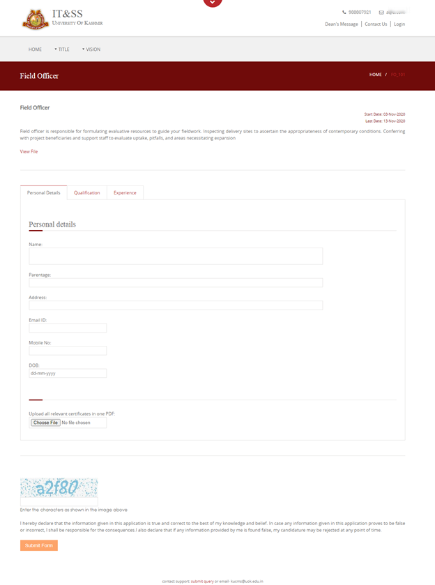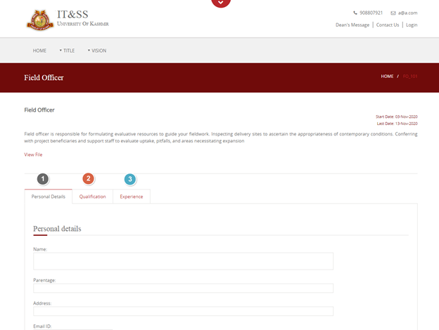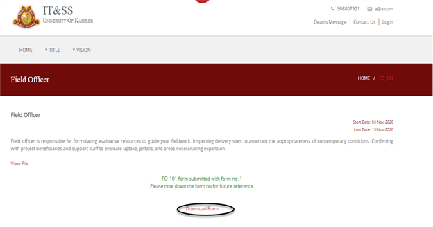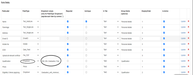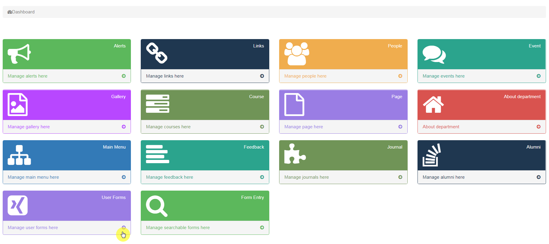 User form is a feature in Content Management system, which allows the department to create a form for gathering any kind of data from the users on the website