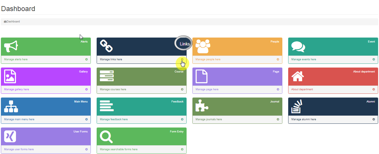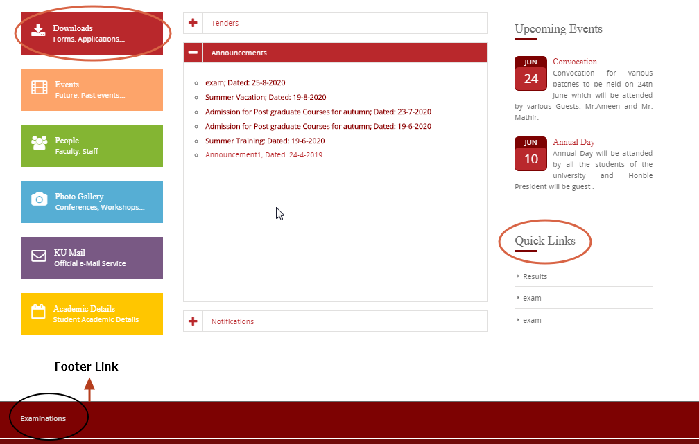E.g If we select quick links, we will get all the quick links posted on the website.